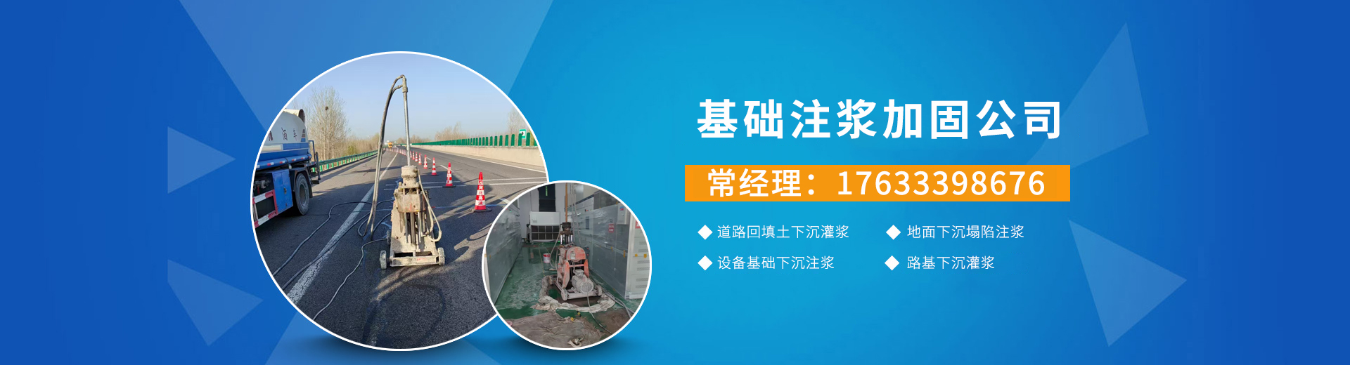 基础注浆加固公司主营地基下沉注浆,基础下沉注浆,压密注浆,厂房地面沉降,路基空鼓,回填土双液注浆,基坑止水,帷幕灌浆,设备基础,水泥注浆等服务。 公司业务范围涉及全国各地多个省市,处理了多项工程,积累了丰富的施工经验,近年来,公司依靠雄厚的技术力量,先进的专业设备,凭着在市政工程设计、施工和地质钻探、物理勘探、工程测量等方面累积的丰富经验,造就了一批具有高素质的工程技术人员和的施工团队,公司重视对员工进行现代化企业管理和技术培训,拥有一批技术过硬、训练有素的企业管理人员和施工技术人员。